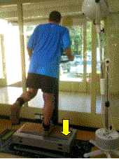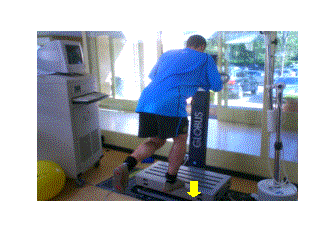 Nota: lĠesercizio prevede che, durante la somministrazione della vibrazione, lĠatleta esegua una fase di contrazione eccentrica a carico dei muscoli gemelli, alla fine di questĠultima, il soggetto si riporta sulla punta del piede dellĠarto leso, grazie alla spinta effettuata con lĠarto controlaterale.